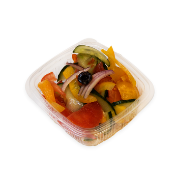DESCRIERE: Roșii 75g, castraveți 75g, sare, ulei de măsline, sos balsamic. 140 (±10%) grame.