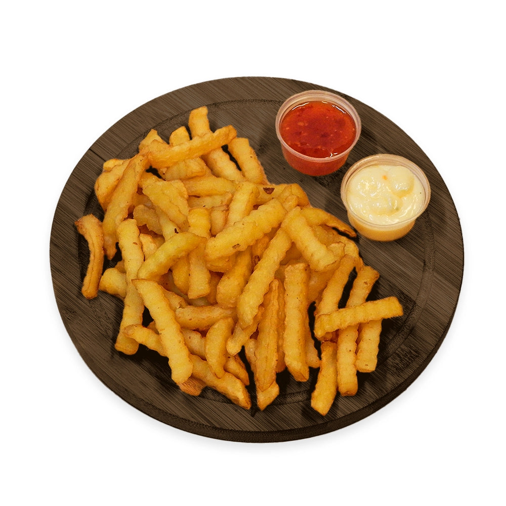 Cartofi Prăjiți - 1 porție de cartofi prăjiți 250g, ciabatta 60g, ketchup 25g, maioneză 25g (sosuri la alegere)
