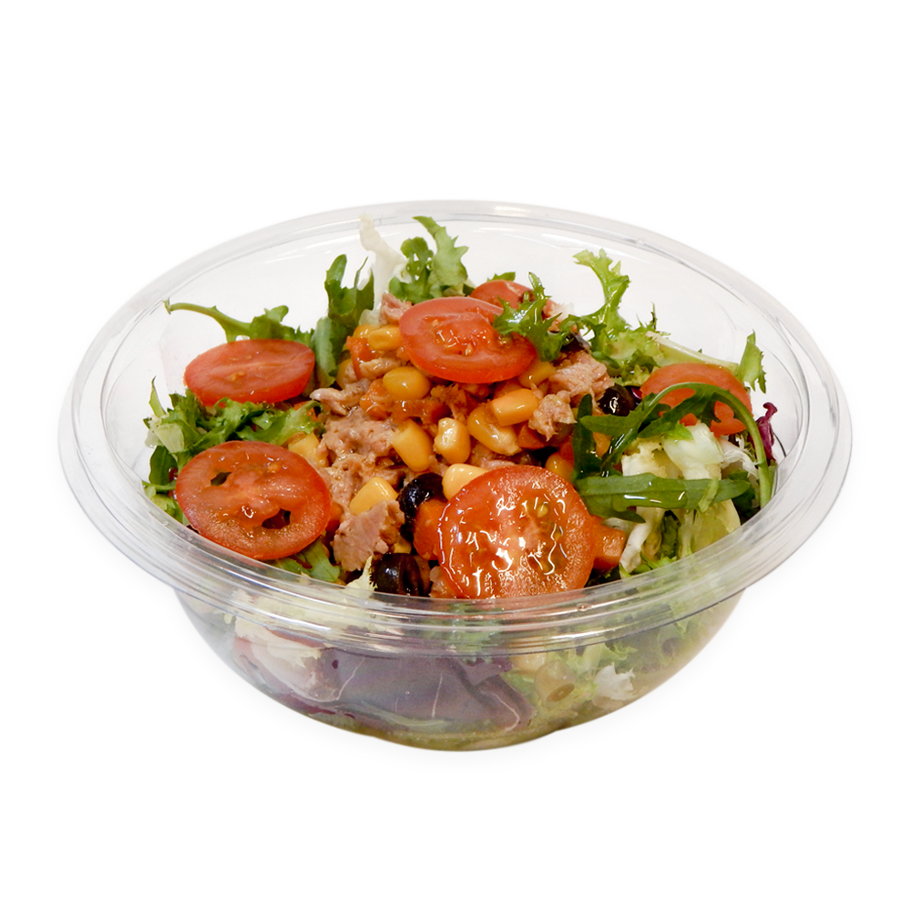 Rio Mare Porumb 160g, salată mixx 70g, roșii cherry 25g, sare, ulei de măsline, sos balsamic.